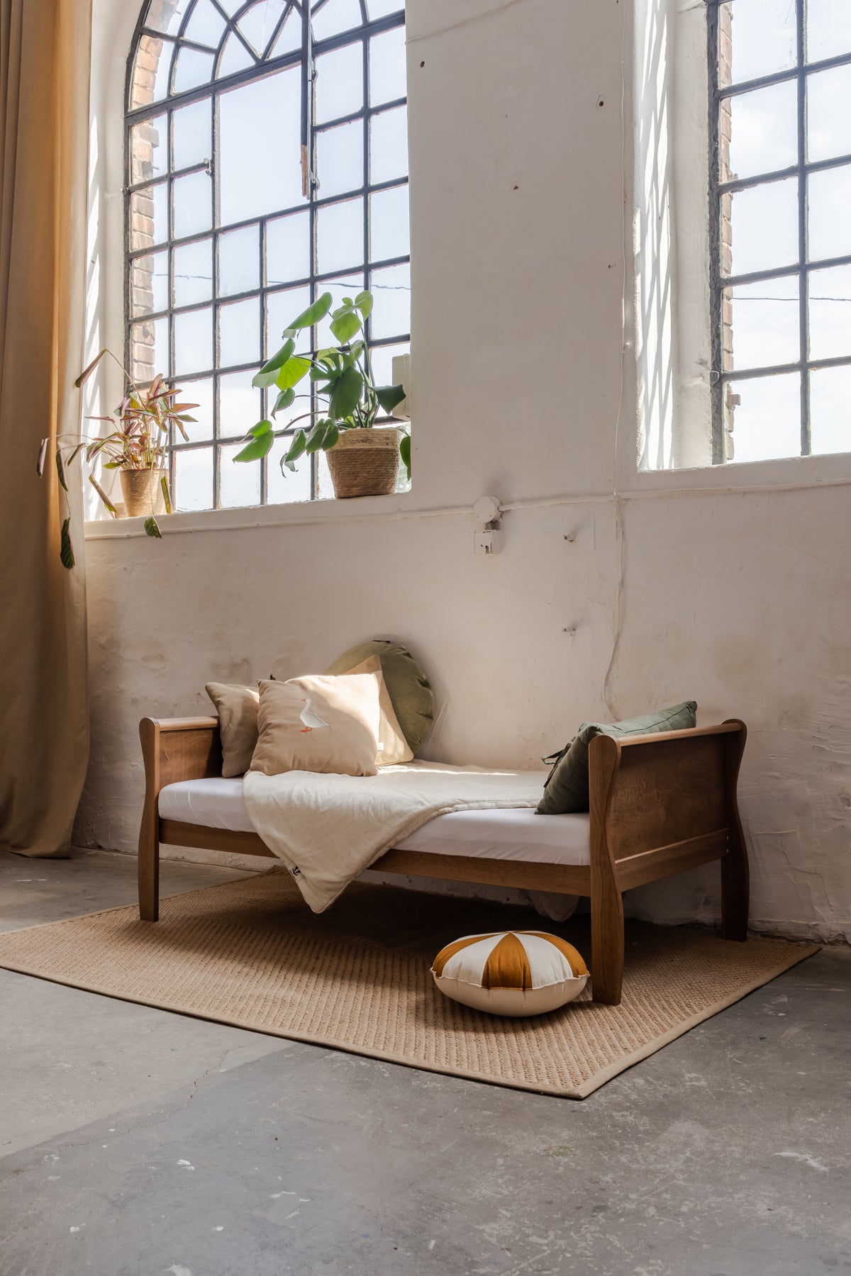 La cama Noble para niños pequeños admite un colchón de 70 x 140 cm; la cama Noble junior admite un colchón de 80 x 160 cm.